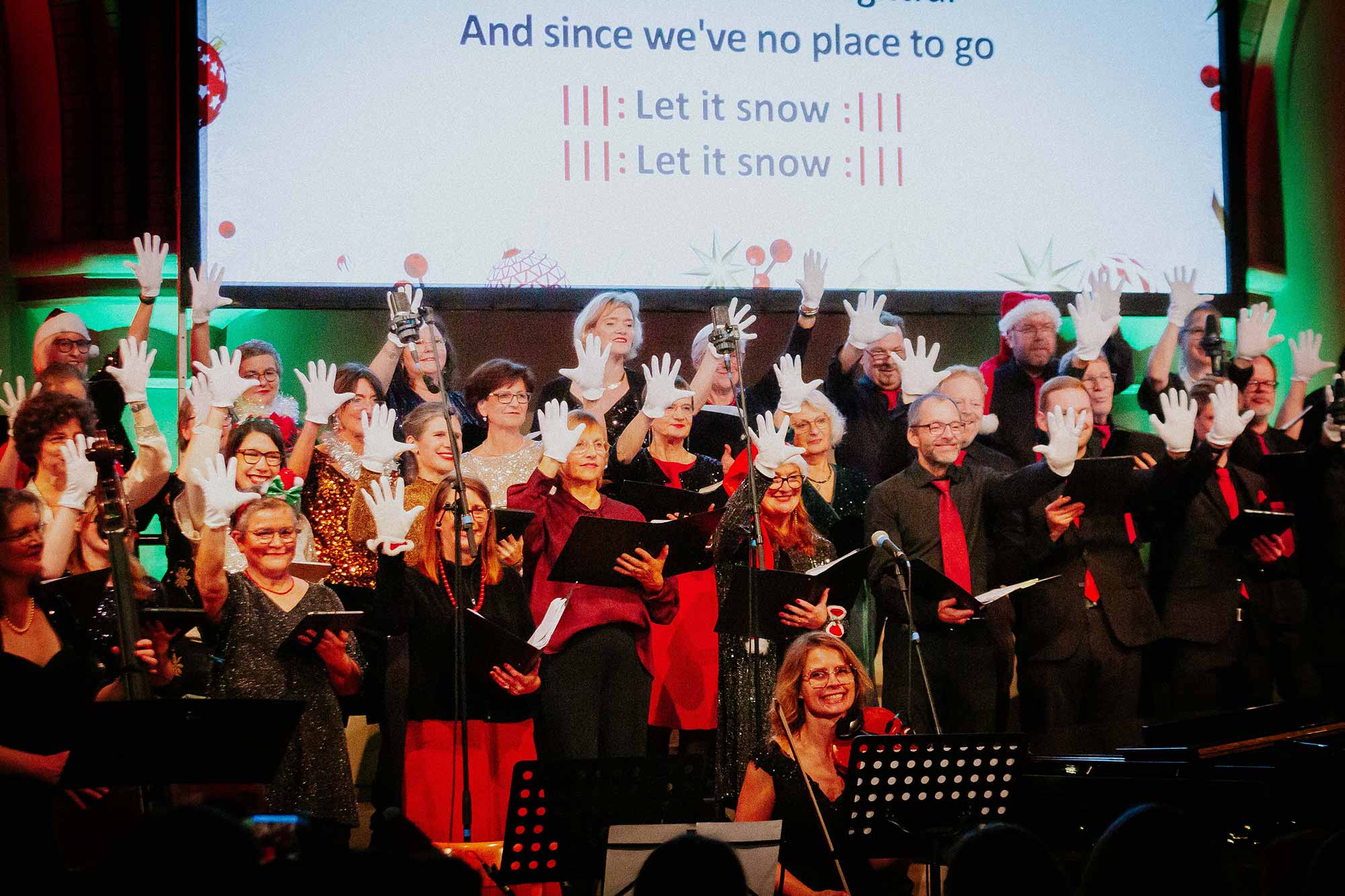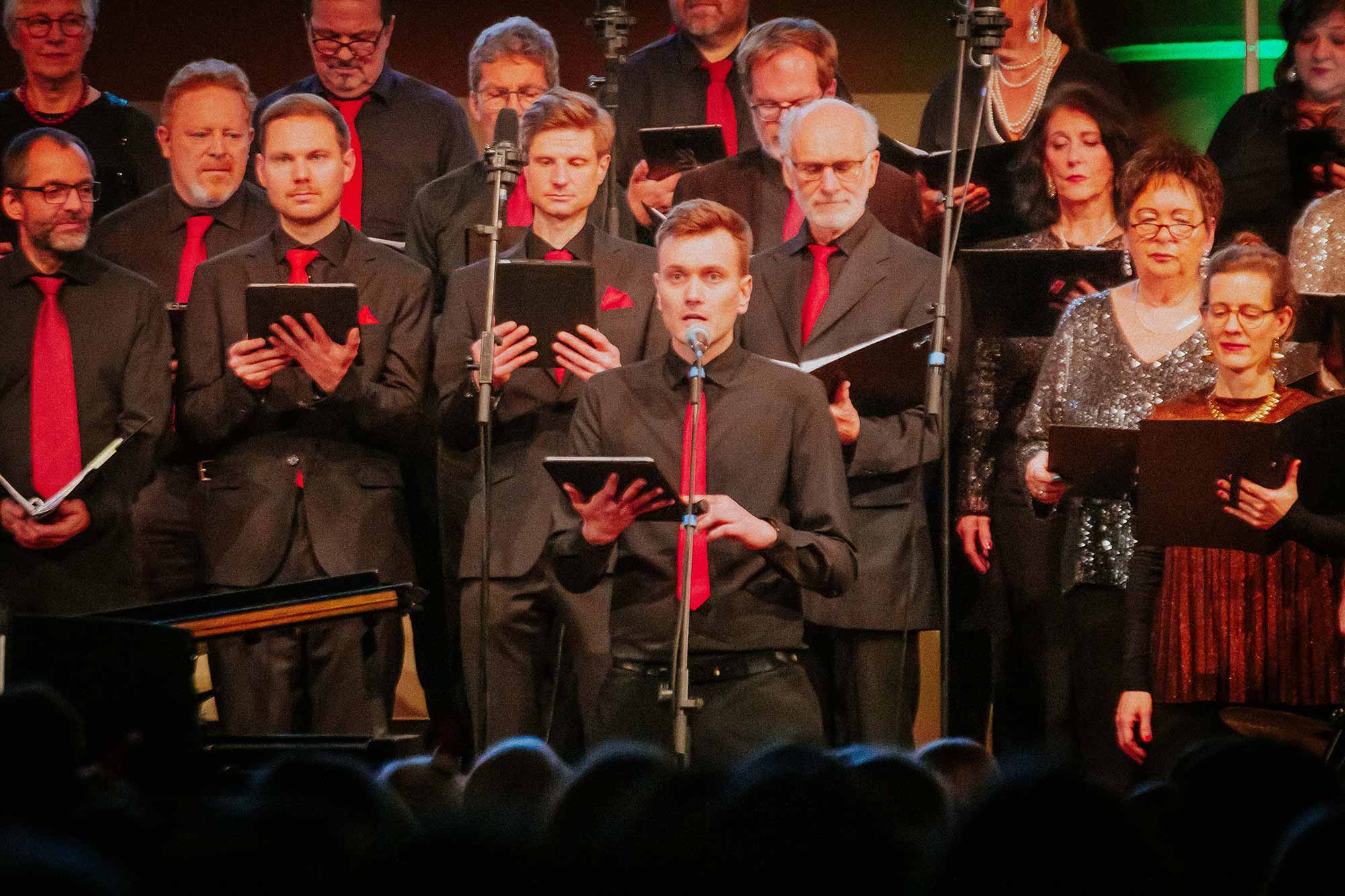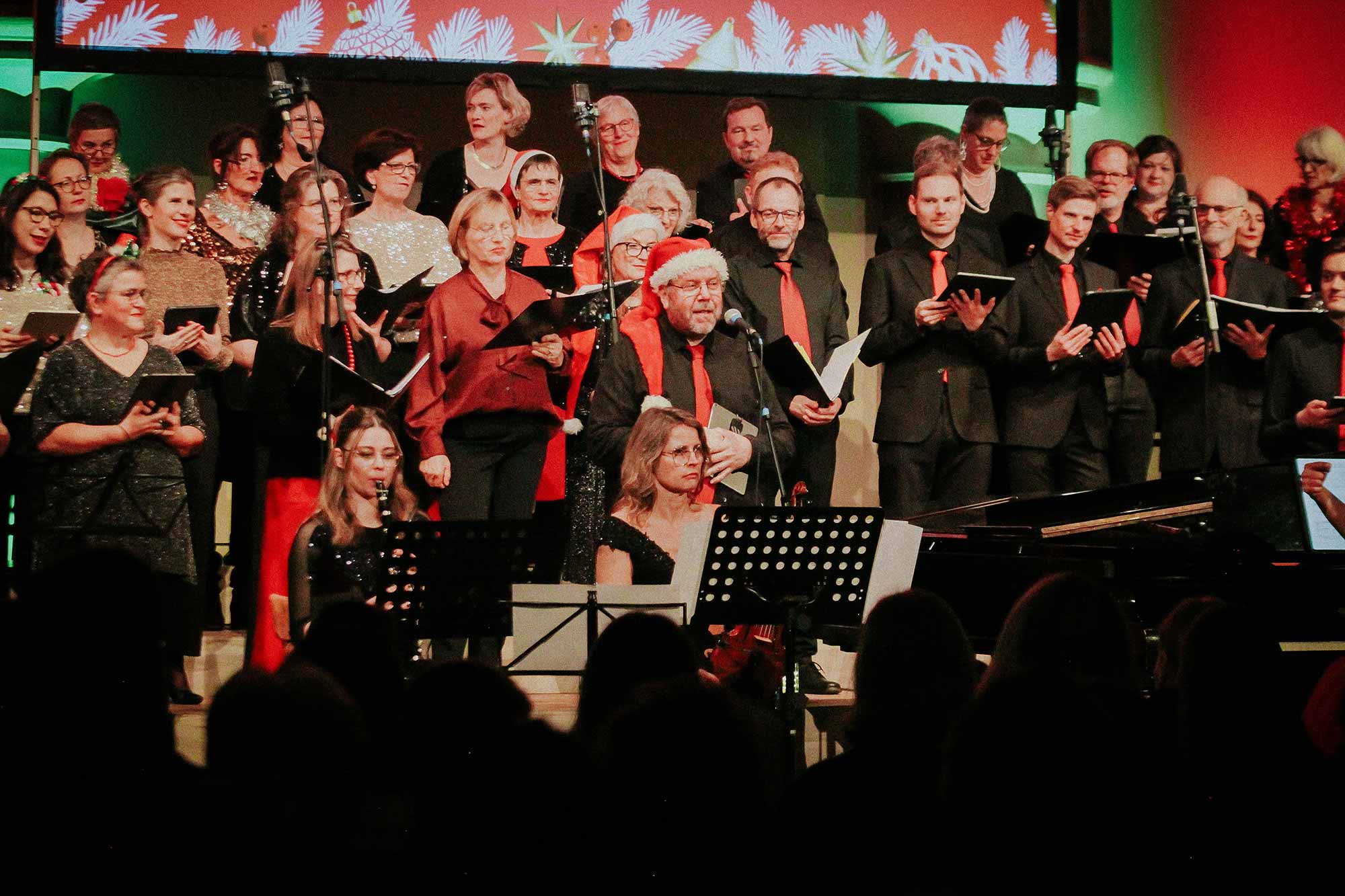 Das Programm führte durch eine reiche Vielfalt an Weihnachtsliedern – von innigen Klassikern bis zu schwungvollen Medleys. Ob „O Holy Night“, „Somewhere in My Memory“, „Dat Joahr geiht to Enn“ oder „In der Weihnachtsbäckerei“: Das Publikum war von Anfang an voll dabei. Es wurde mitgesungen, mitgeklatscht, geschunkelt und gelacht – ein echtes Mitsingkonzert im schönsten Sinne.