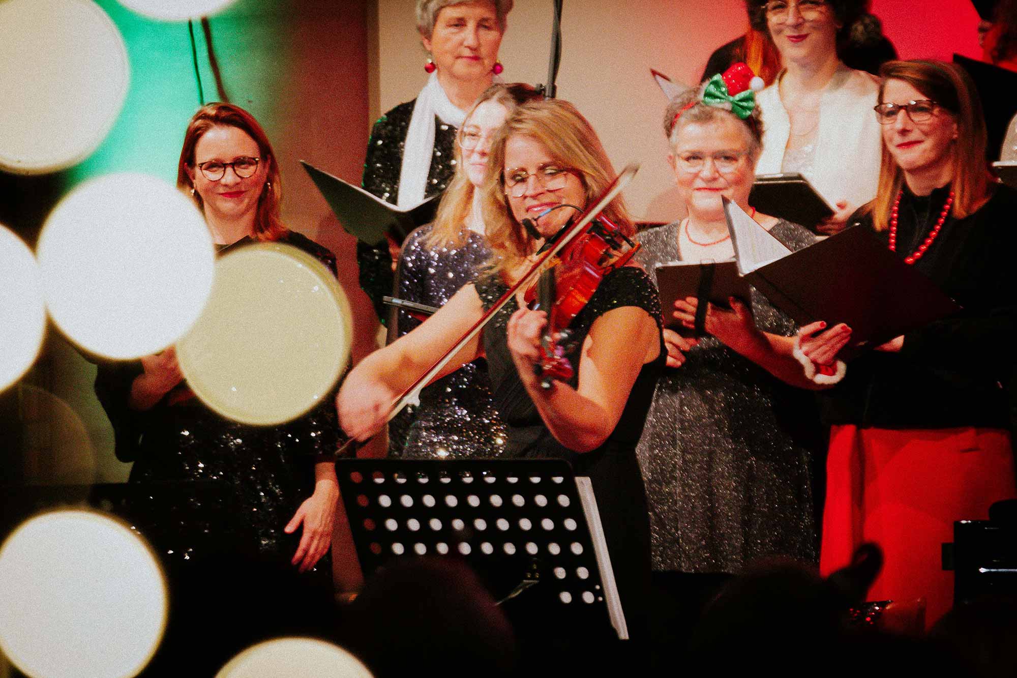 Ein besonderes Highlight war der erste Auftritt von Annika Litzendorf mit den SINGING SUES. Die gebürtige Hamburgerin ist eine vielfach ausgezeichnete Geigerin und Bratschistin, die unter anderem bei großen Musicalproduktionen wie Der König der Löwen, Tarzan, Aladdin und Das Phantom der Oper spielte und mit Künstlerinnen und Künstlern wie Christina Aguilera, Michael Bublé, Josh Groban, PUR und den Ten Tenors auf der Bühne stand.