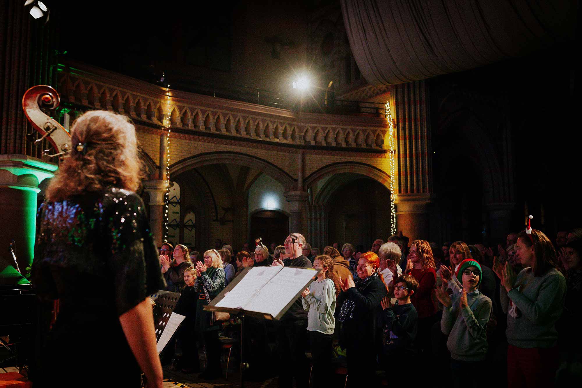 Ein absolutes Highlight war „Christmas Is Coming“: Annika Litzendorf, Band, Chor und Publikum verwandelten die Kulturkirche mit Stampfen, Rhythmus und voller Energie in eine irische Kneipe. Die Kirche bebte, alle waren auf den Beinen – ein Moment purer Lebensfreude, der noch lange nachklang.